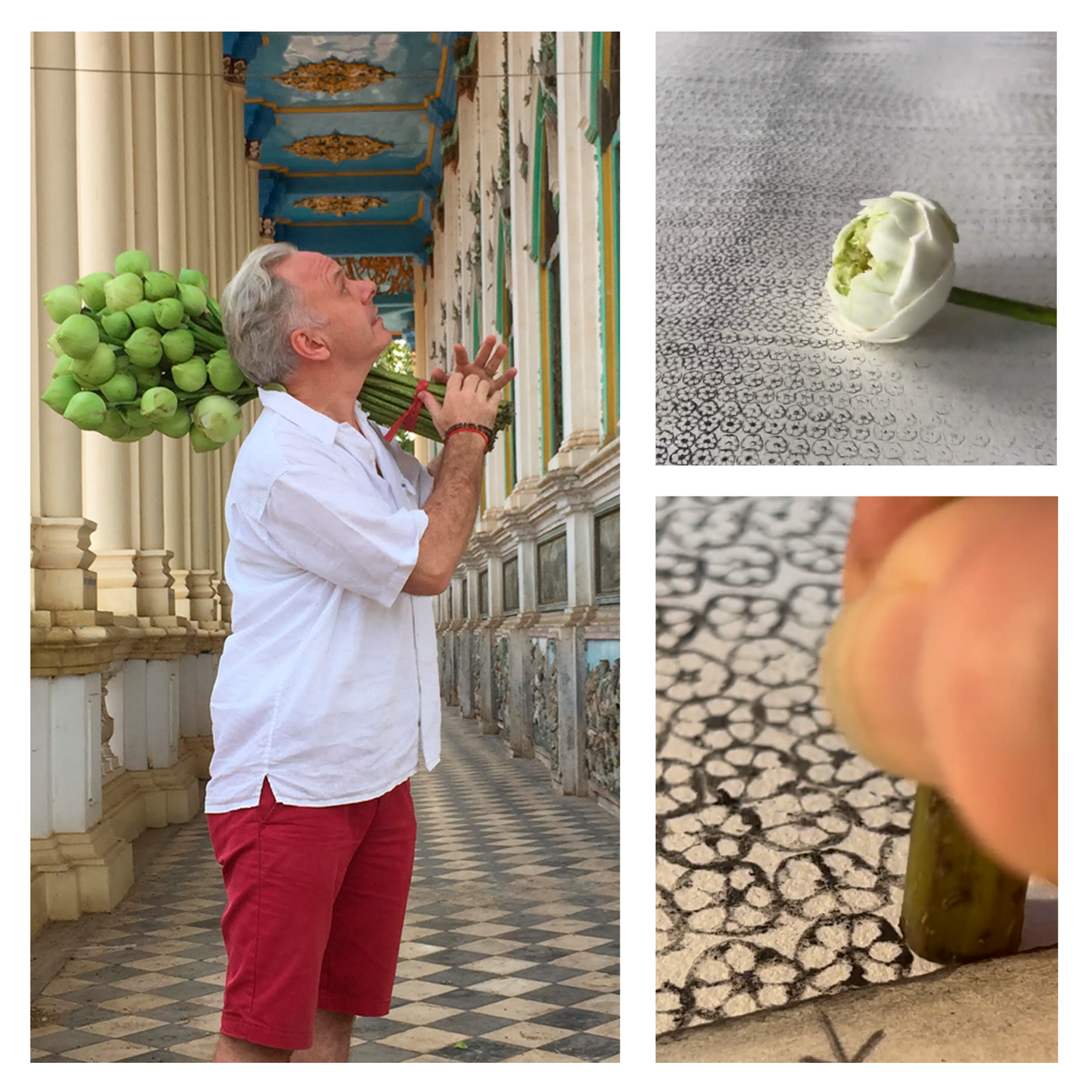 Pattern impressions made by the hand of Morrison Polkinghorne using Lotus stems grown & foraged in Cambodia