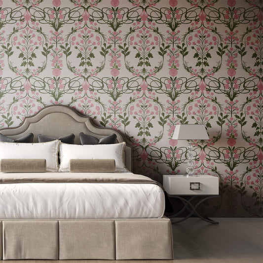 Eternal Garden is a collection of timeless botanicals inspired by historic ornament, Art Nouveau, and Mughal pattern. Flowing vines, layered florals, and inky linework create immersive designs that feel both refined and enduring. Printed with exceptional depth and nuance, each pattern brings a quiet, lasting sense of nature into the interior.
