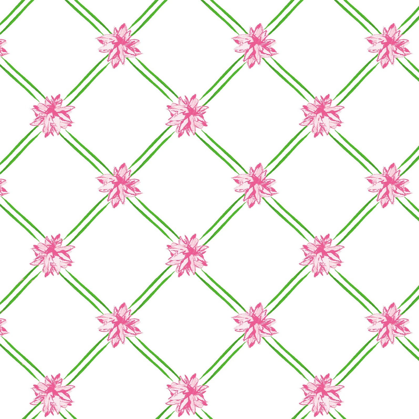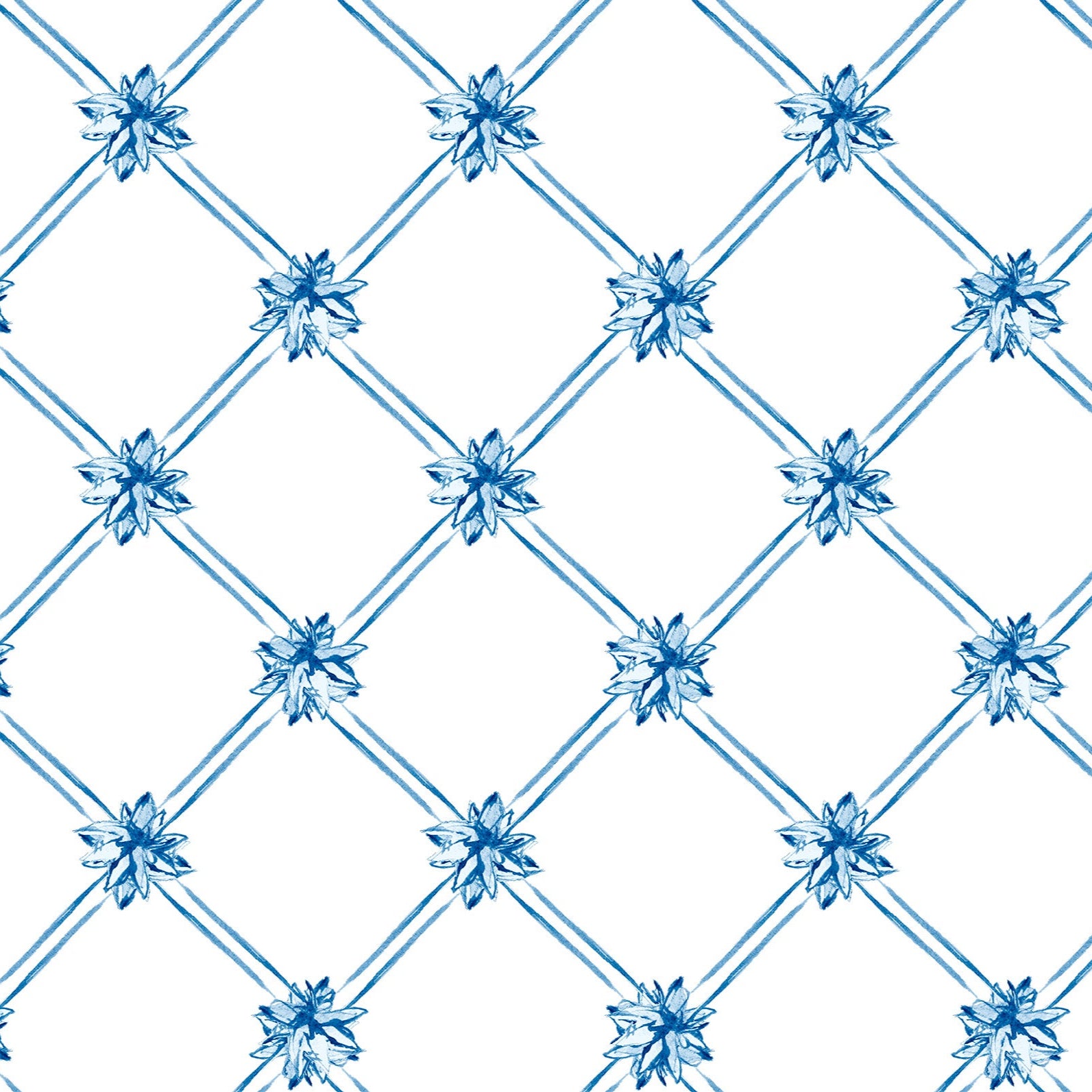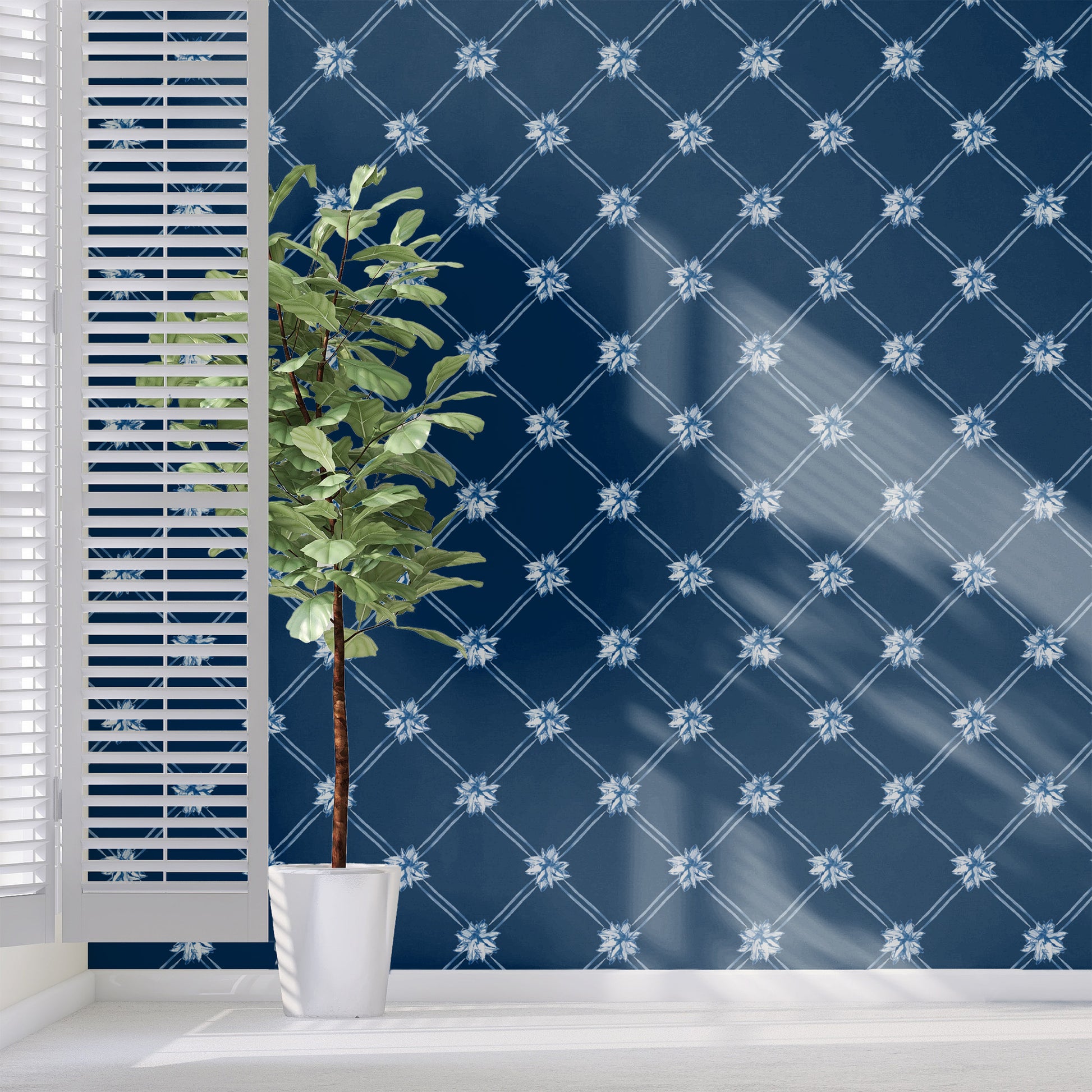 Lotus Lattice weaves together tradition, nature, and geometry in a pattern that’s both serene and striking. Inspired by Cambodian fishing nets, the hand-painted stems form a delicate diamond lattice—each intersection adorned with a luminous lotus flower. The effect is rhythmic yet organic, a balance of symmetry and softness that brings a sense of harmony to any interior.