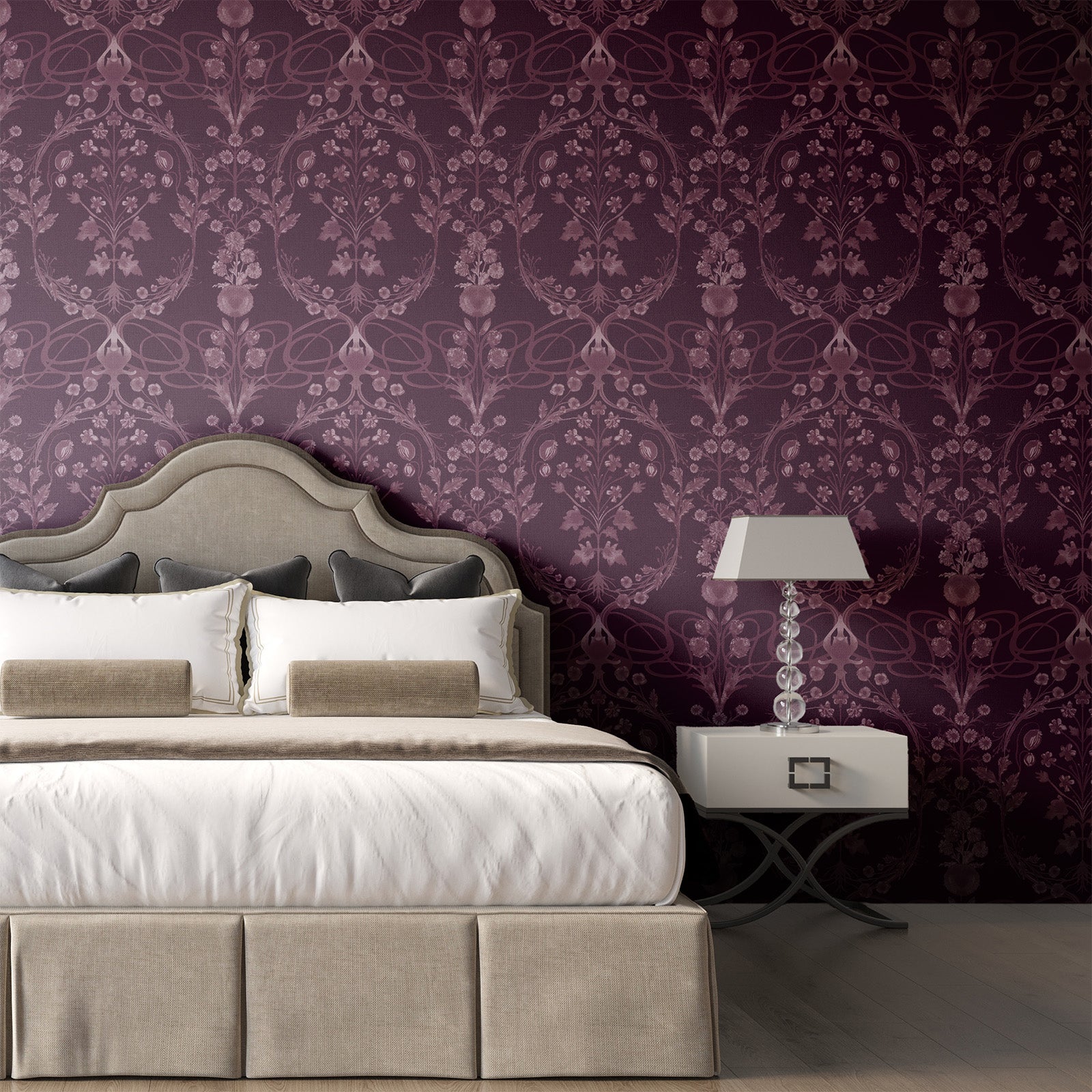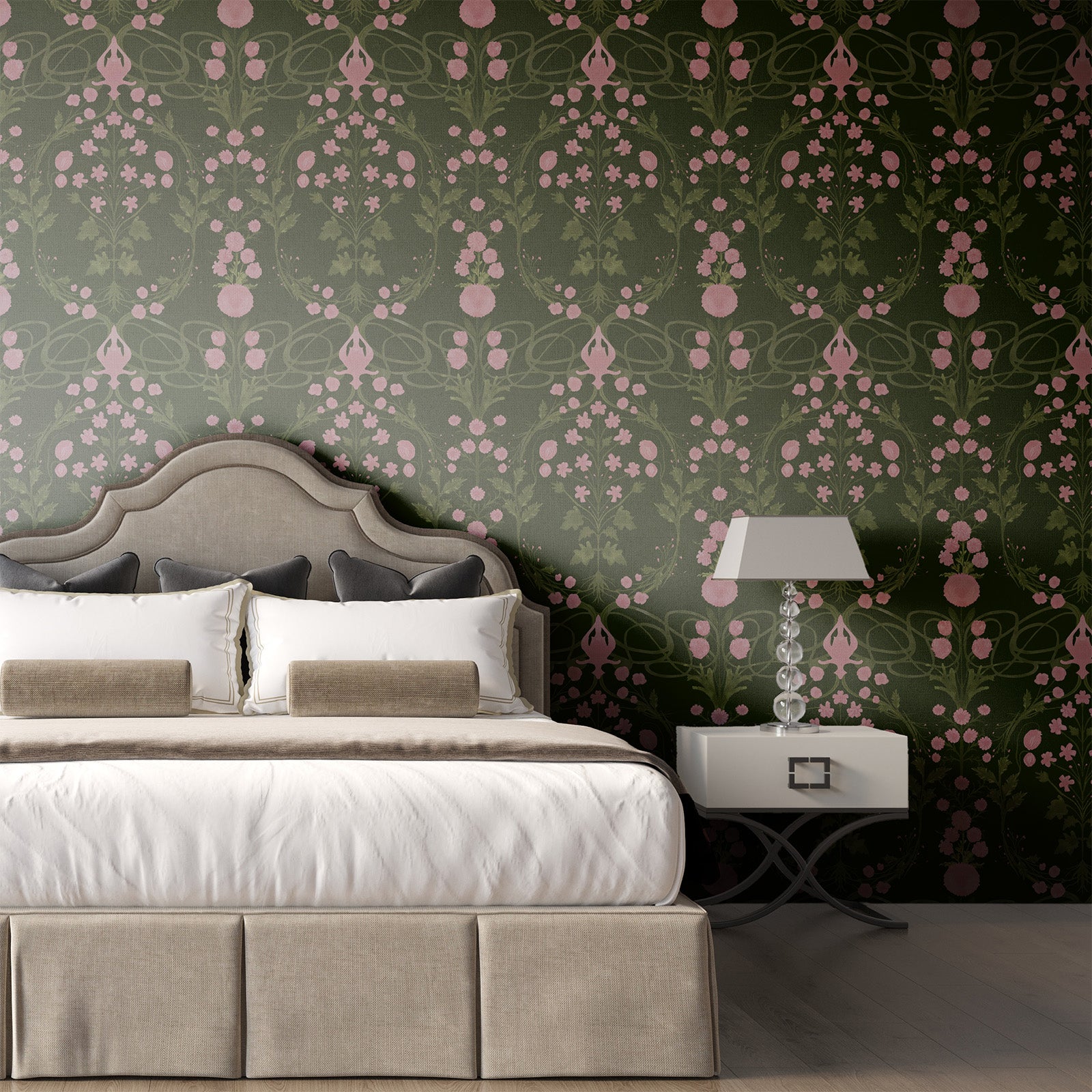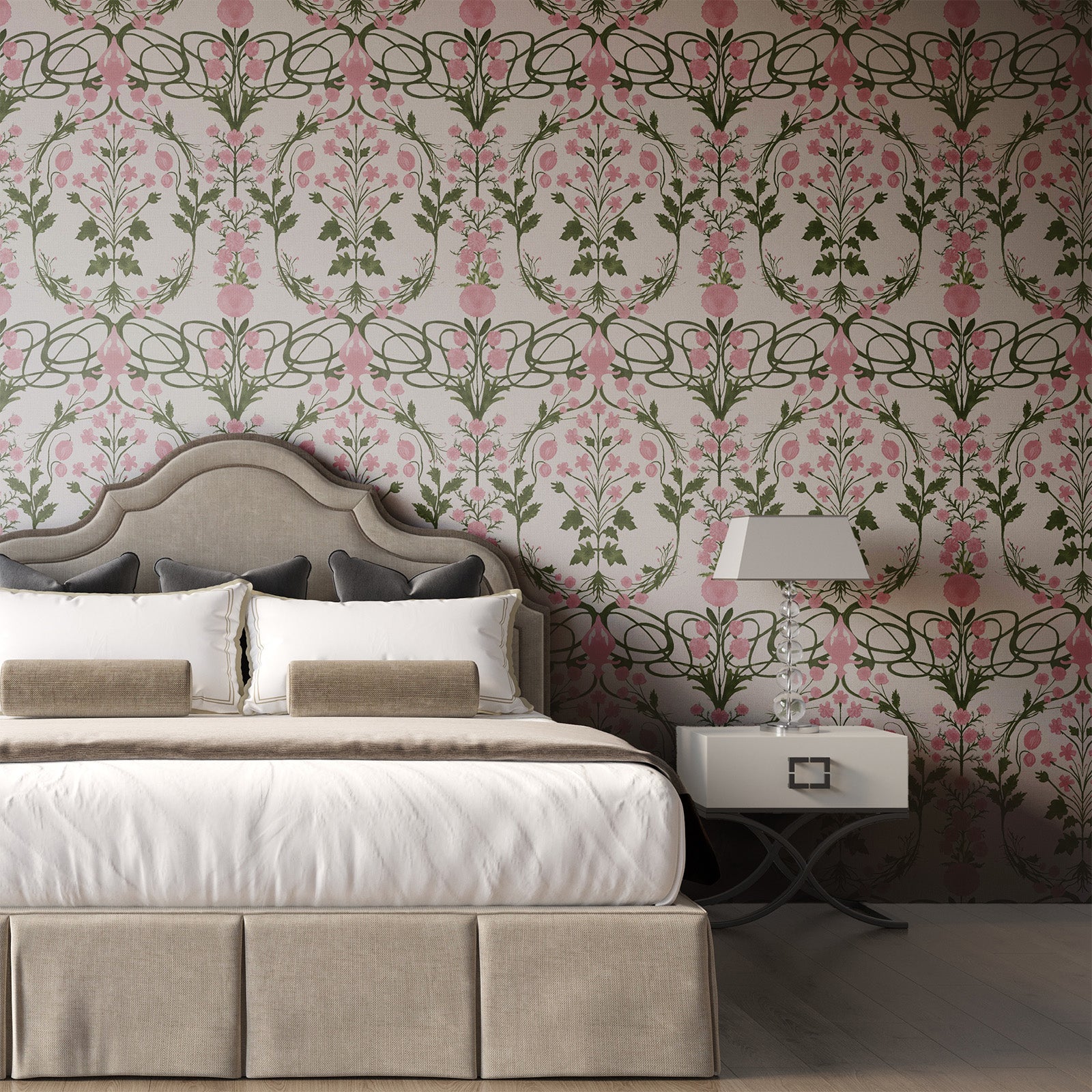 Taj Nouveau fuses Persian-inspired ornament with Art Nouveau fluidity. Stylized florals and graceful curves form a design that feels both historic and modern — ideal for spaces that blend classic beauty with contemporary elegance.