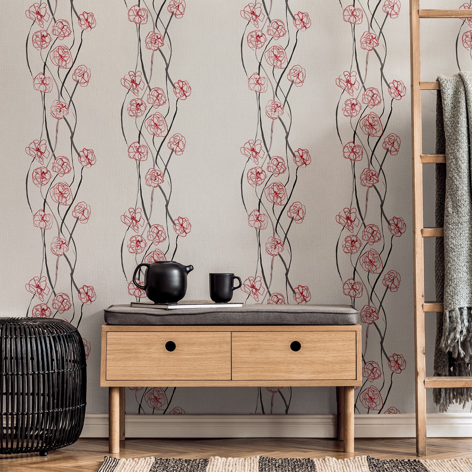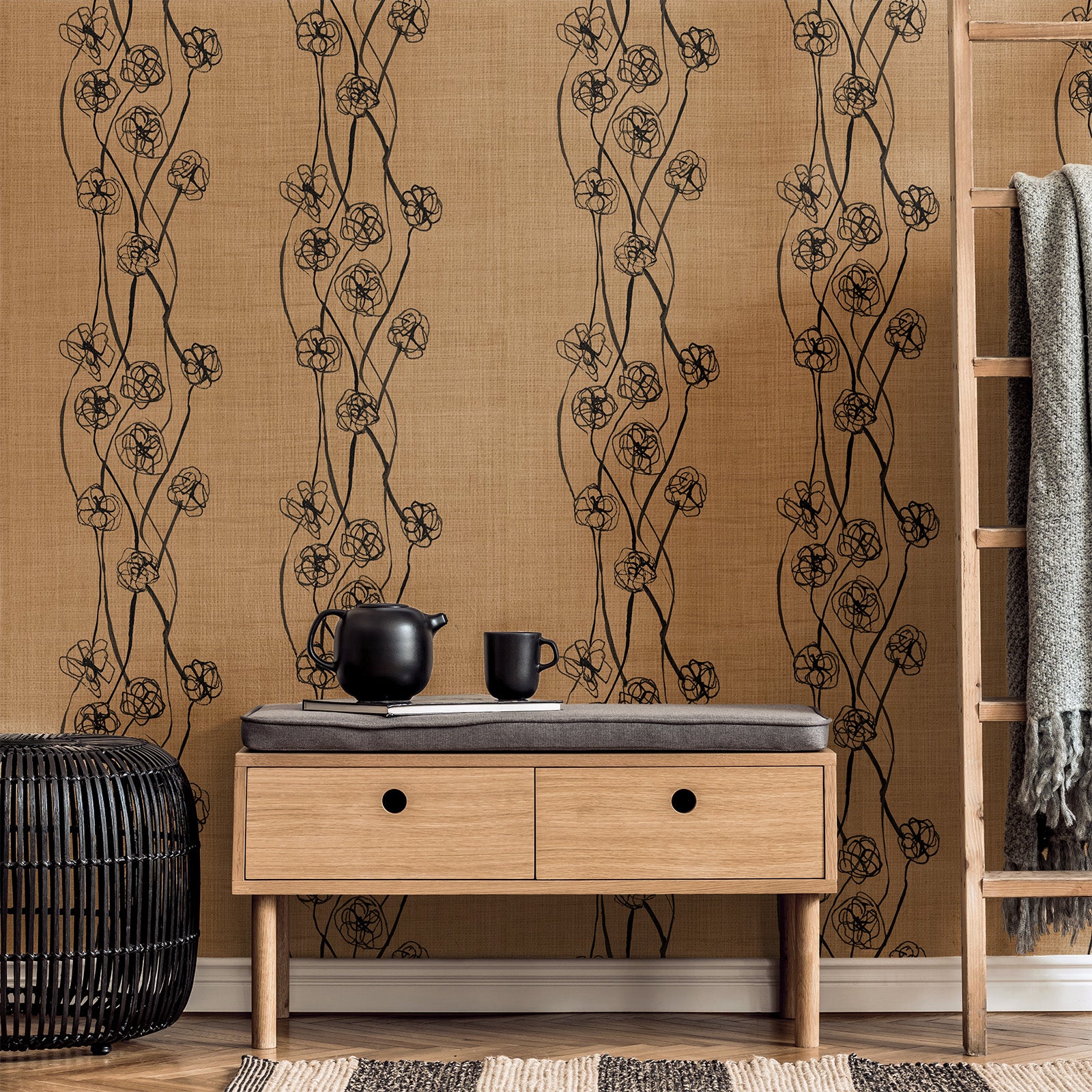 Trailing vines and open blooms create a sense of organic movement and balance. Vine Blossom brings natural elegance to interiors, where painterly detail adds warmth and artistry without overwhelming the space.
